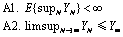 根据YN的定义,我们不难发现limsupN®¥YN=-¥,而Y¥=-¥,所以limsupN®¥YN≤Y¥=-¥,A2得证;同时,对于任意N=1,2,3,4,…,supNYN<¥,所以E{supNYN}<¥一定满足条件,A1得证.