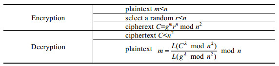 1.3 Paillier同态加密方案[22]Paillier构造的方案(如图 1所示)可以利用密文的运算在明文空间